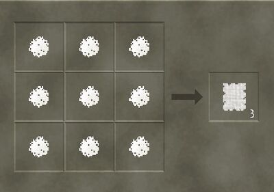 Crafting takes 9 pieces of canvas, which are crafted from 9 cotton wads (yields 3 canvas). The recipe yields 6 pieces of carpet: